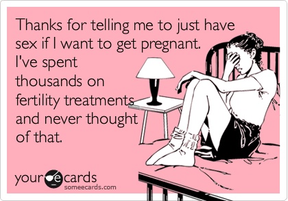 “It’s not superficially pleasing.” Agree. You cannot see infertility, unless through the lens of a hangover post unsuccessful cycle… Under my personal lens, all pregnant women seem to be happy and fulfilled, but if my fertility drug-induced symptoms are any indication, I think that pregnant women are quite possibly as uncomfortable as I am, so the truth is that on the outside they look the happiest but maybe that’s not the whole truth. – I still hate them. NO I DON’T but it felt funny to me to write that – grumpy cat humor is my style!
